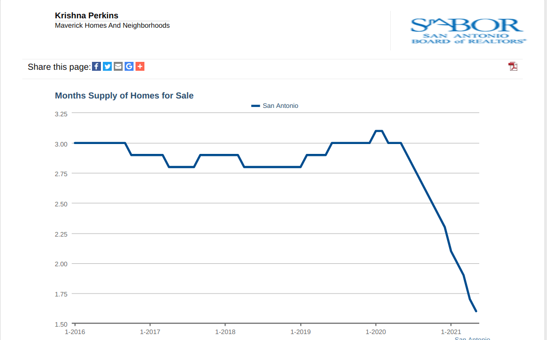 First we look at San Antonio Texas our home town all the way back to 2016. As you can see from the above chart we have been in a strong seller’s market for some time now. Any housing market with 5-6 months worth of inventory is balanced and anything below that is a strong sellers market.