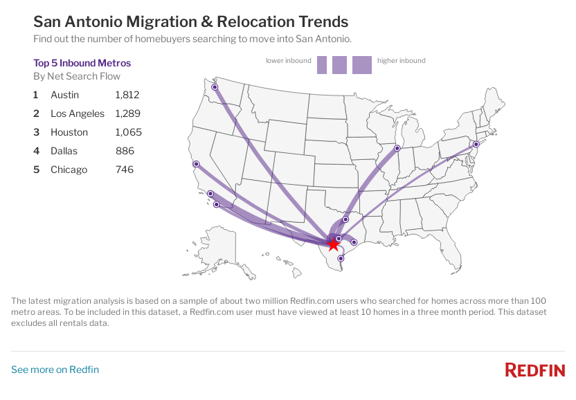 Those of you wondering who is driving up the price of homes in San Antonio. You may find a clue on Redfin’s site search data. For me, Los Angeles is no surprise, but I was surprised to see Austin so far ahead of the search inquiries. To understand why our prices in San Antonio have gone so far up and may continue to experience positive price appreciation in the future, a simple comparative home search in each of the cities above reveals much of the motivation.
